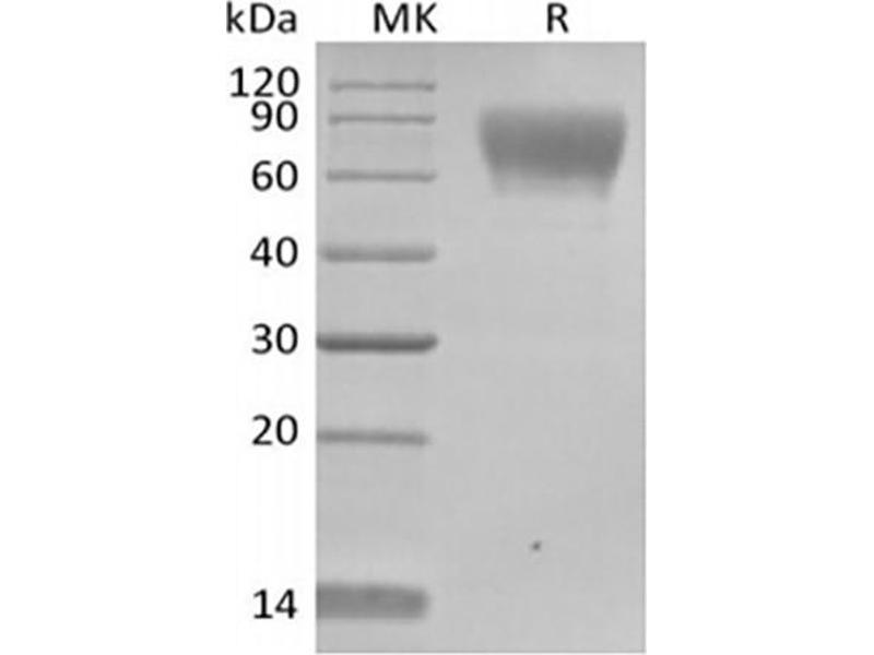 The purity of the protein is greater than 90 % as determined by SDS-PAGE and Coomassie blue staining.