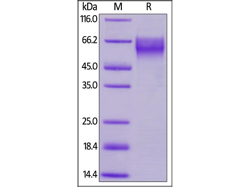 The purity of the protein is greater than 95 % as determined by SDS-PAGE and Coomassie blue staining.