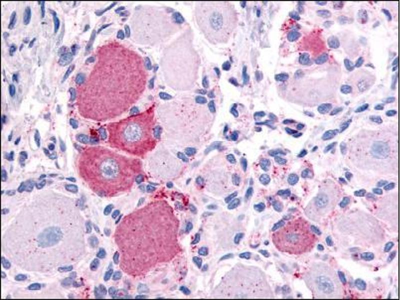 : "Dual expression of mouse and rat VRL-1 in the dorsal root ganglion derived cell line F-11 and biochemical analysis of VRL-1 after heterologous expression." in: European journal of biochemistry / FEBS, Vol. 270, Issue 21, pp. 4264-71, (2003) (PubMed).