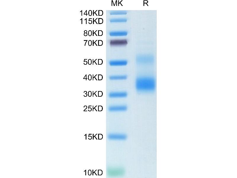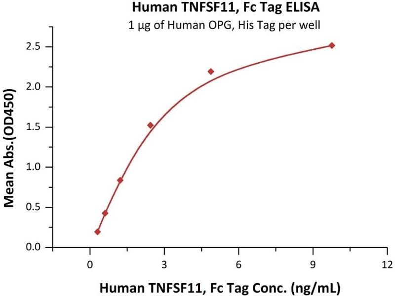 TNFSF11 Origin: Human Host: HEK-293 Cells Recombinant The purity of the protein is greater than 95 % as determined by SDS-PAGE and Coomassie blue staining.