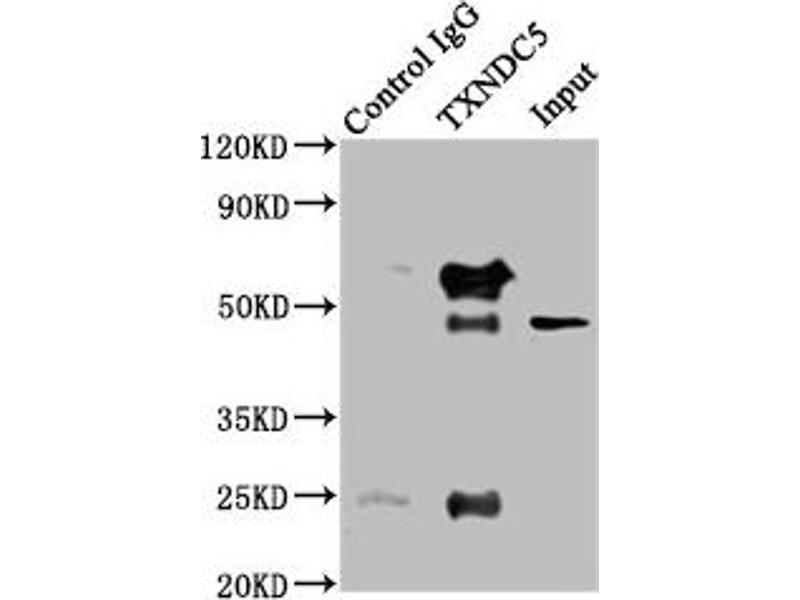 : "EndoPDI, a novel protein-disulfide isomerase-like protein that is preferentially expressed in endothelial cells acts as a stress survival factor." in: The Journal of biological chemistry, Vol. 278, Issue 47, pp. 47079-88, (2003) (PubMed).Aliases for TXNDC5 Antibodies
