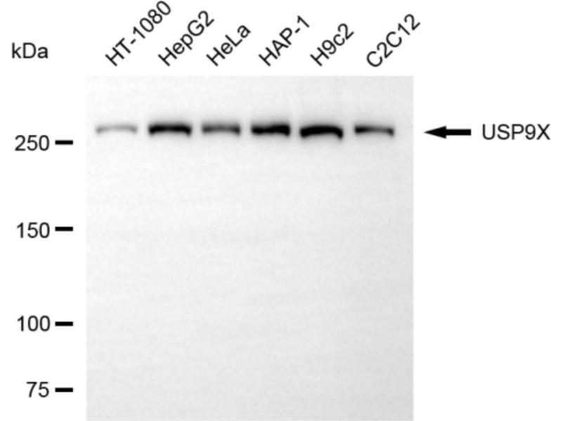 Explore reliable USP9X antibodies from a broad selection of renowned manufacturers. Our portfolio enables accurate USP9X detection across multiple species, including Human, Mouse, Rat, Dog, Cow, Pig, Rabbit, Horse, Monkey, Bat, Chicken, and supports diverse research applications such as WB, IHC, IF, FACS, ICC.