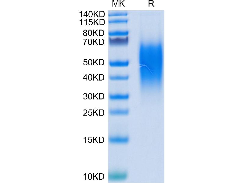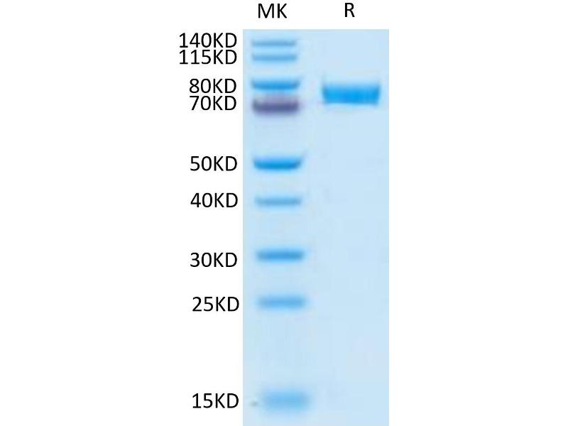 The purity of the protein is greater than 95 % as determined by SDS-PAGE and Coomassie blue staining.