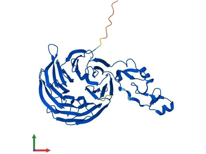 This gene encodes a protein that contains two WD domains and an FYVE zinc finger region. The function of this gene is unknown. An alternatively spliced transcript variant of this gene may exist. [provided by RefSeq, Jul 2008].