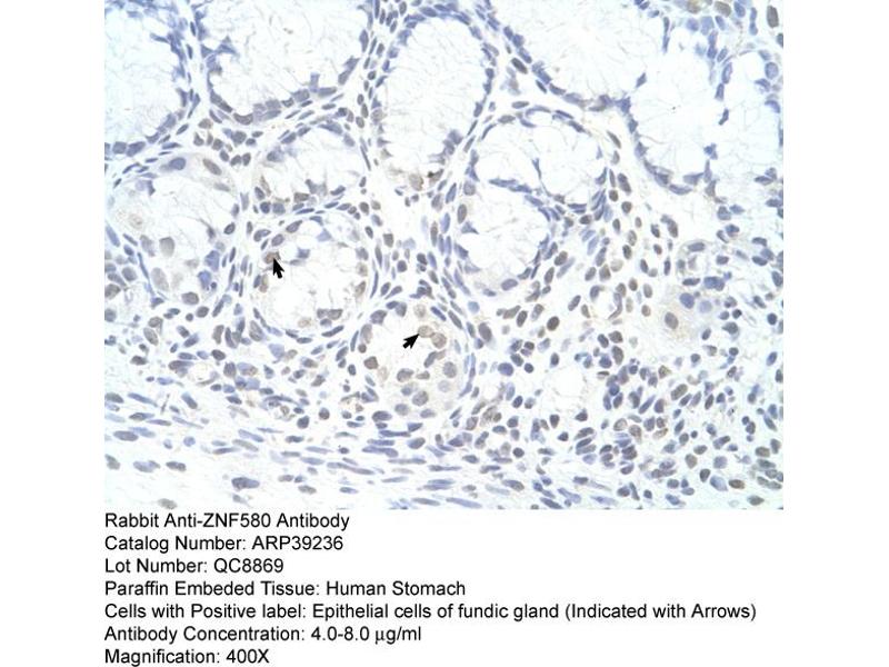 : "Suppression of zinc finger protein 580 by high oxLDL/LDL-ratios is followed by enhanced expression of endothelial IL-8." in: Atherosclerosis, Vol. 216, Issue 1, pp. 103-8, (2011) (PubMed).Aliases for ZNF580 Antibodies
